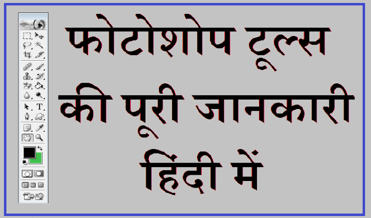 एडोब फोटोशॉप पर कार्य करने के लिए विभिन्न प्रकार के टूल्स होते हैं इन टूल्स को जिस जगह पर व्यवस्थित रखा जाता है उसे टूलबॉक्स कहते हैं इन टूल्स की मदद से हम फोटोशॉप में कई प्रकार के कार्य कर सकते हैं जैसे फोटो को सिलेक्ट करना, फोटो को साफ़ करना, क्रॉप करना, कलर चेंज करना, ब्लर करना आदि